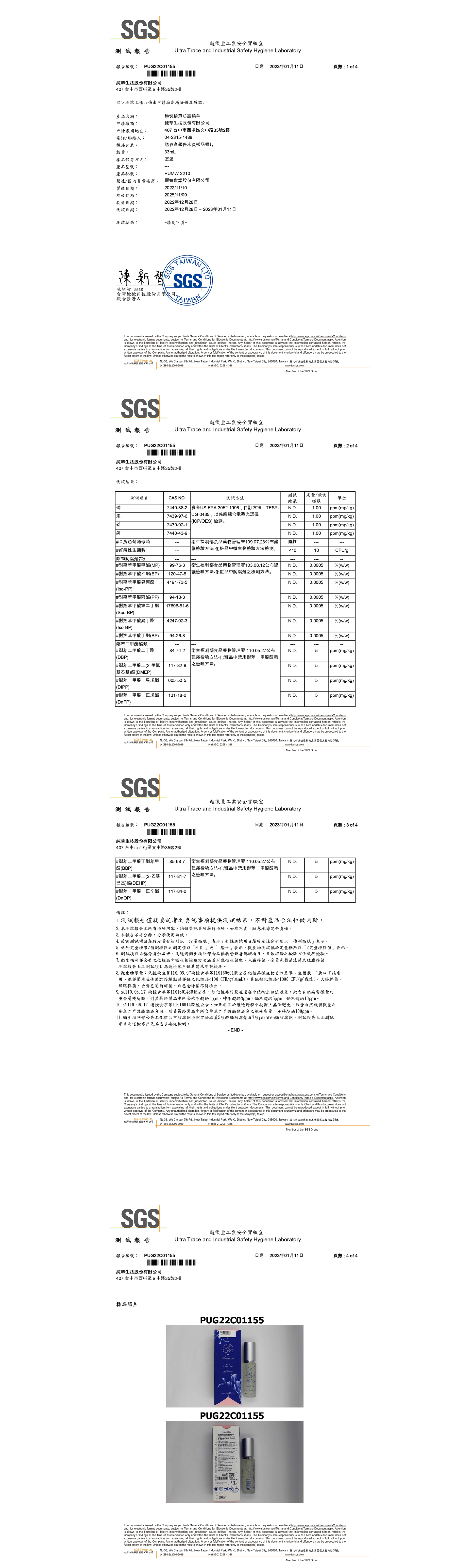 極悅抗菌精質防護精華 | SGS檢驗報告